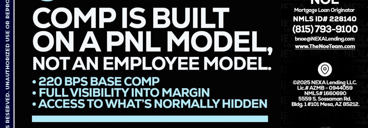 Hi, my name is Brian Noe. I’m a Loan Officer with NEXA Lending LLC., offering personalized mortgage solutions, fast customized quotes, great rates and service with integrity.