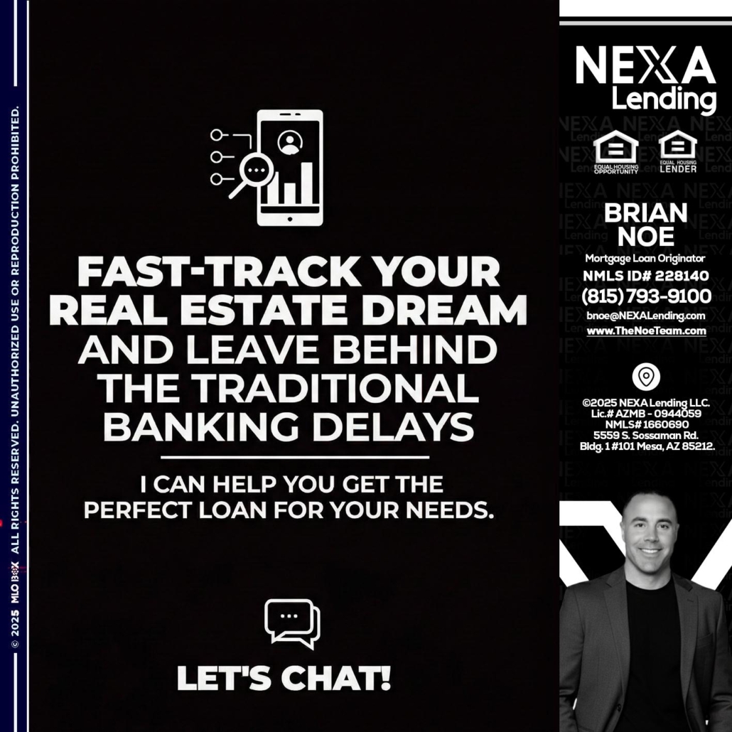 Hi, my name is Brian Noe. I’m a Loan Officer with NEXA Lending LLC., offering personalized mortgage solutions, fast customized quotes, great rates and service with integrity.