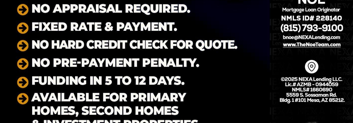 Hi, my name is Brian Noe. I’m a Loan Officer with NEXA Lending LLC., offering personalized mortgage solutions, fast customized quotes, great rates and service with integrity.