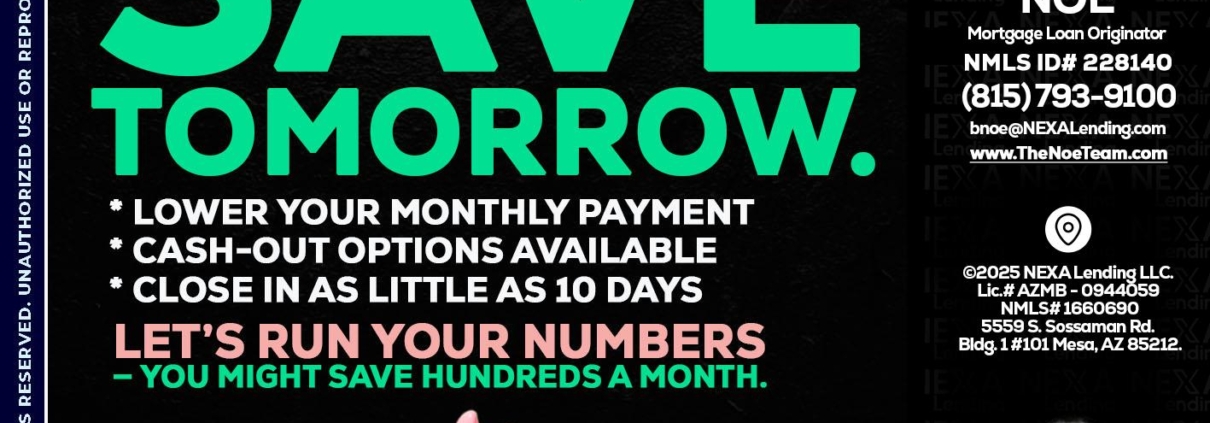 Hi, my name is Brian Noe. I’m a Loan Officer with NEXA Mortgage LLC., offering personalized mortgage solutions, fast customized quotes, great rates and service with integrity.