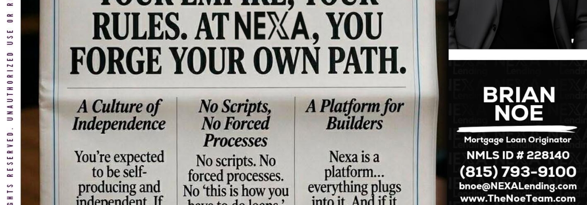 Hi, my name is Brian Noe. I’m a Loan Officer with NEXA Lending LLC., offering personalized mortgage solutions, fast customized quotes, great rates and service with integrity.