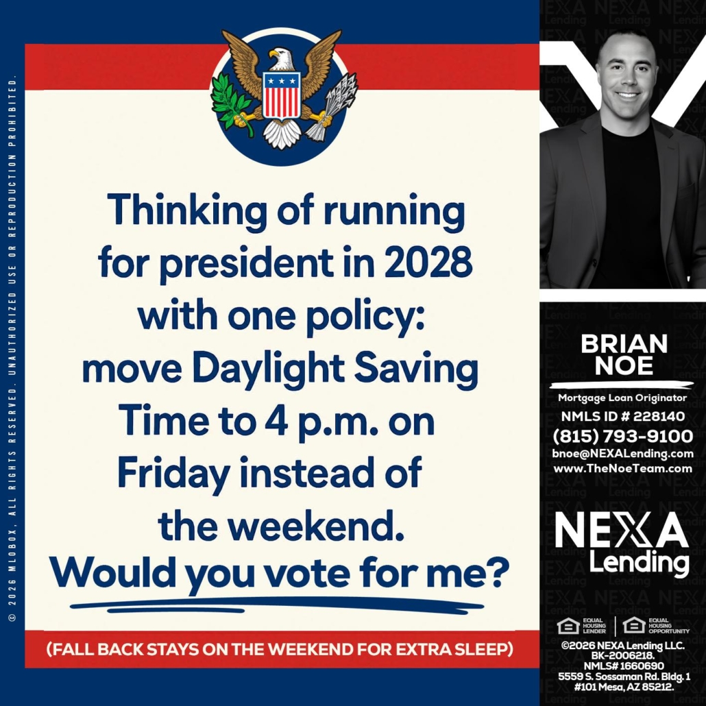 THINKING OF RUNING - Brian Noe -Mortgage Loan OriginatorHi, my name is Brian Noe. I’m a Loan Officer with NEXA Lending LLC., offering personalized mortgage solutions, fast customized quotes, great rates and service with integrity.